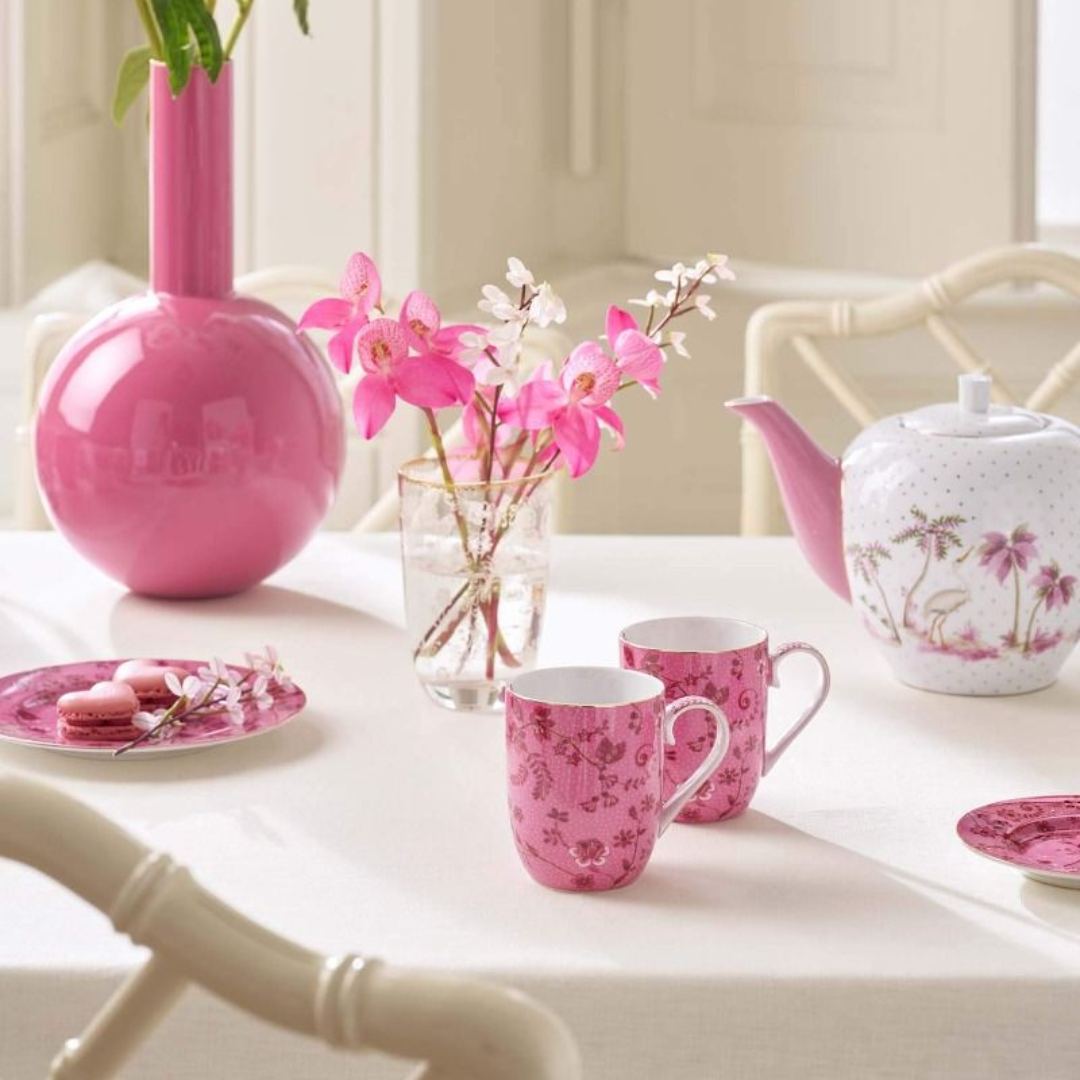 SET X2 MUGS PEQUEÑOS JOLIE FLORES ROSA
