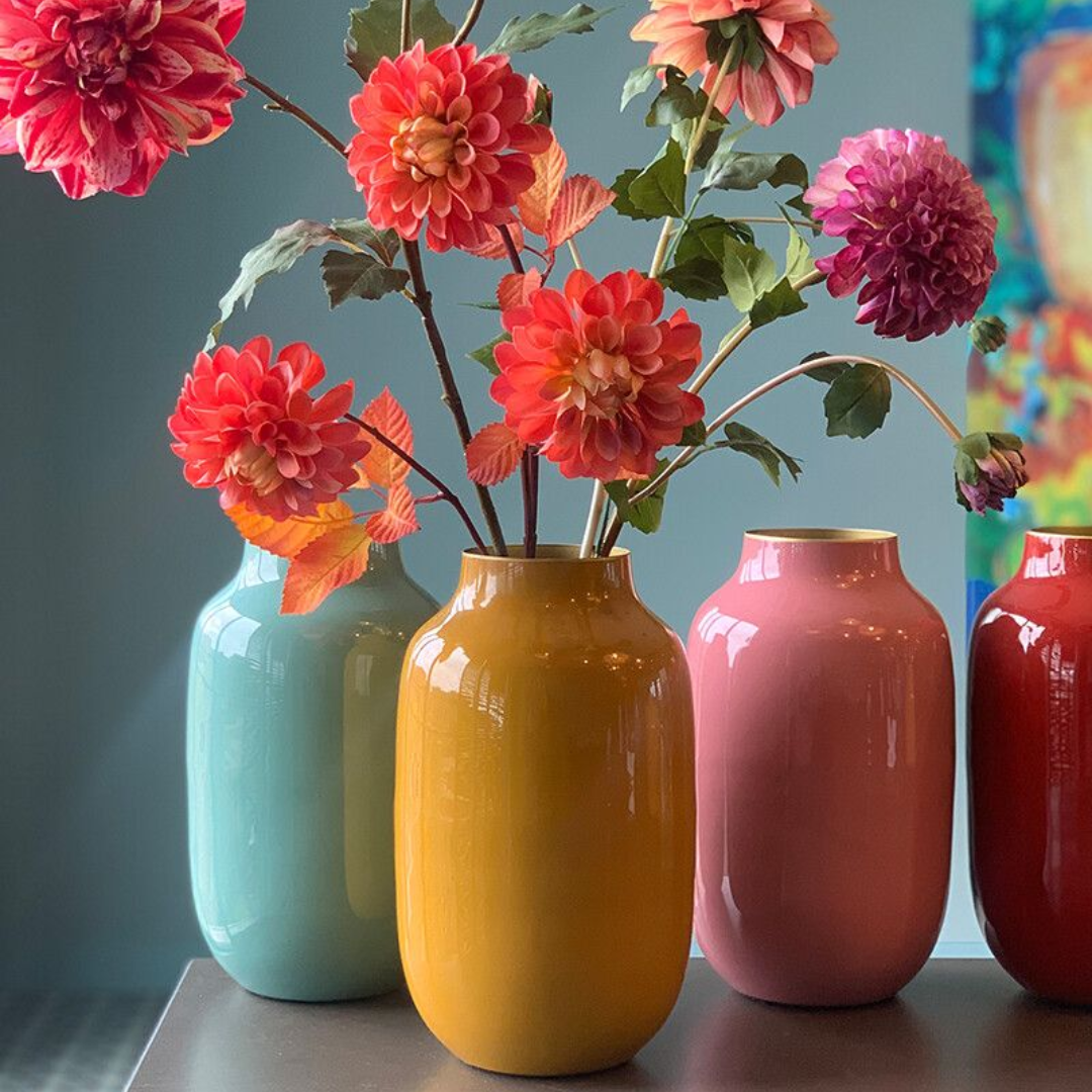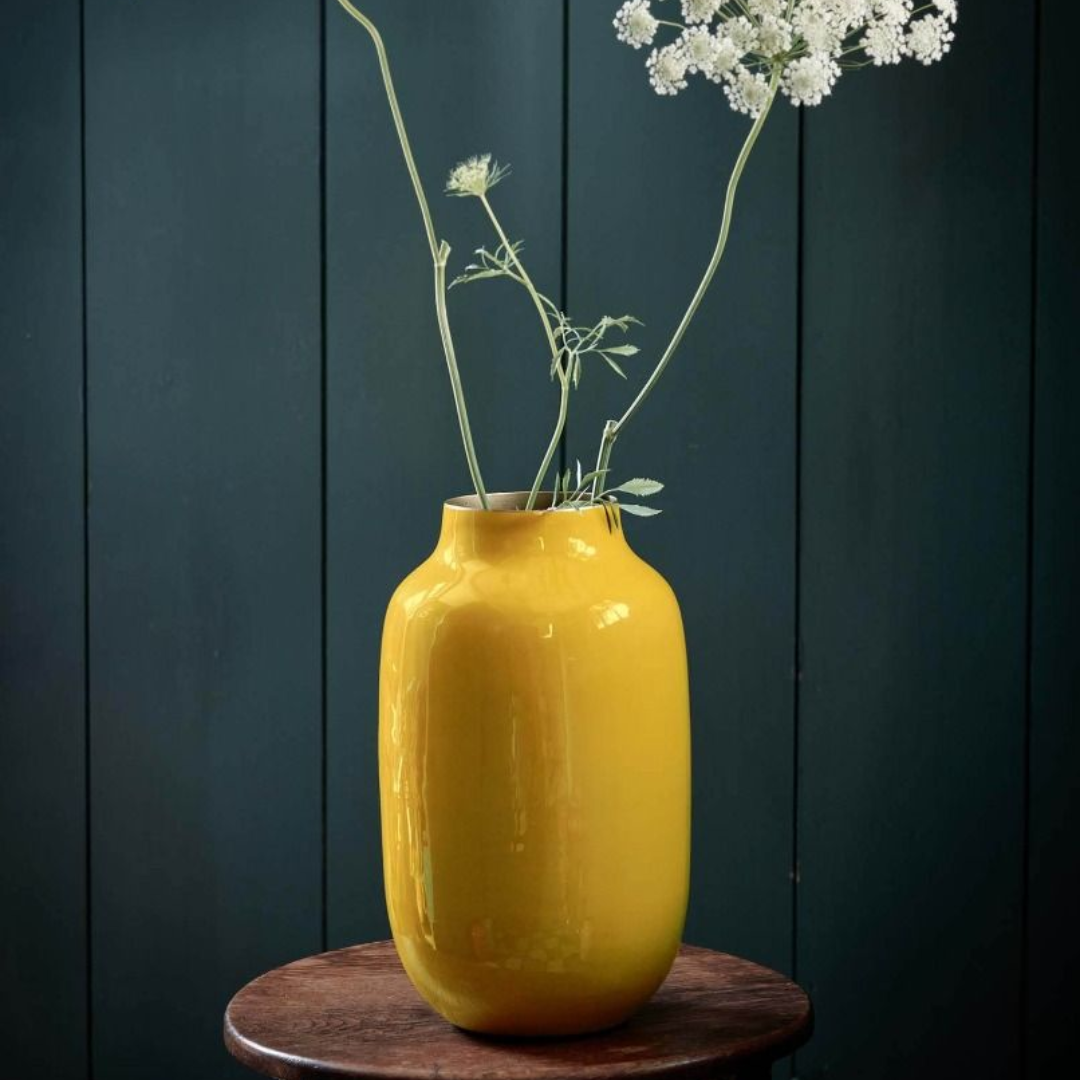 JARRÓN METÁLICO OVALADO AMARILLO